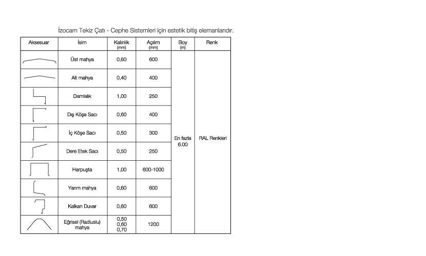 Standart dışı aksesuarlar isteğe bağlı olarak üretilebilir.